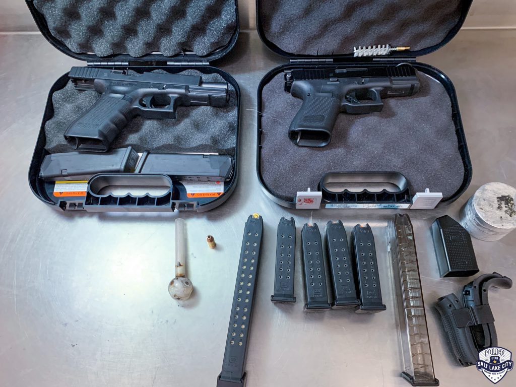 SLCPD Officers Arrest Two for Weapons PossessionSALT LAKE CITY — Officers with the Salt Lake City Police Department, while on proactive patrol, safely arrested two men for possession of a firearm by a restricted person and possession of drug paraphernalia. This investigation started at 7:17 p.m. on Wednesday, December 21, 2022, when an SLCPD Officer assigned to the Central Division Bike Squad saw a car commit a traffic violation on 200 West. The officer conducted a traffic stop at 320 West 500 South and contacted the driver, later identified as 24-year-old Chase Nelson. The officer saw an open container of alcohol in the vehicle, as well as a handgun case. The officer returned to his vehicle to conduct a records check and found Nelson was a restricted person who cannot legally possess a firearm. Officers detained Nelson and the other individuals in the car. Officers searched the car pursuant to their investigation and located two handguns as well as drug paraphernalia. One of the handguns was located where 22-year-old Marqus Cyrus was sitting. Officers determined Cyrus was a restricted person who could not legally possess a firearm. Officers placed Nelson and Cyrus under arrest and transported them to the Salt Lake County Metro Jail. Nelson and Cyrus were both booked on charges of possession of a weapon by a restricted person and possession of drug paraphernalia. Charges are only allegations, and every arrested person is presumed innocent unless and until proven guilty beyond a reasonable doubt. A photo of the firearms and paraphernalia is being released. Media may use this photo with photo credit to the Salt Lake City Police Department.