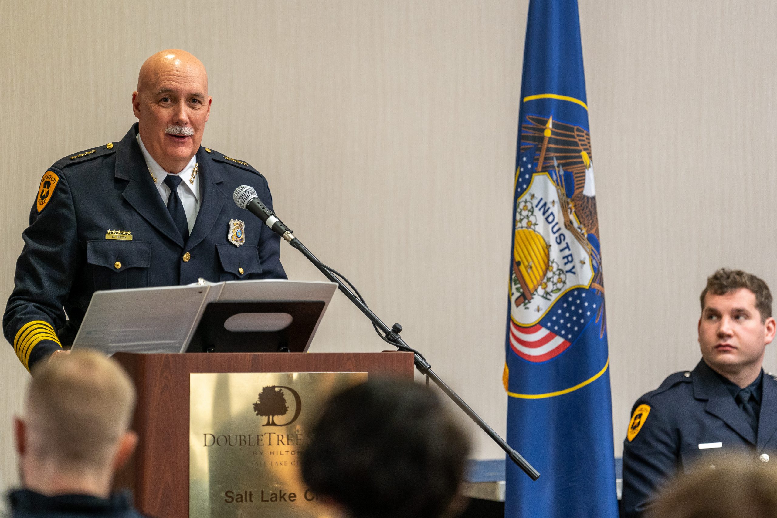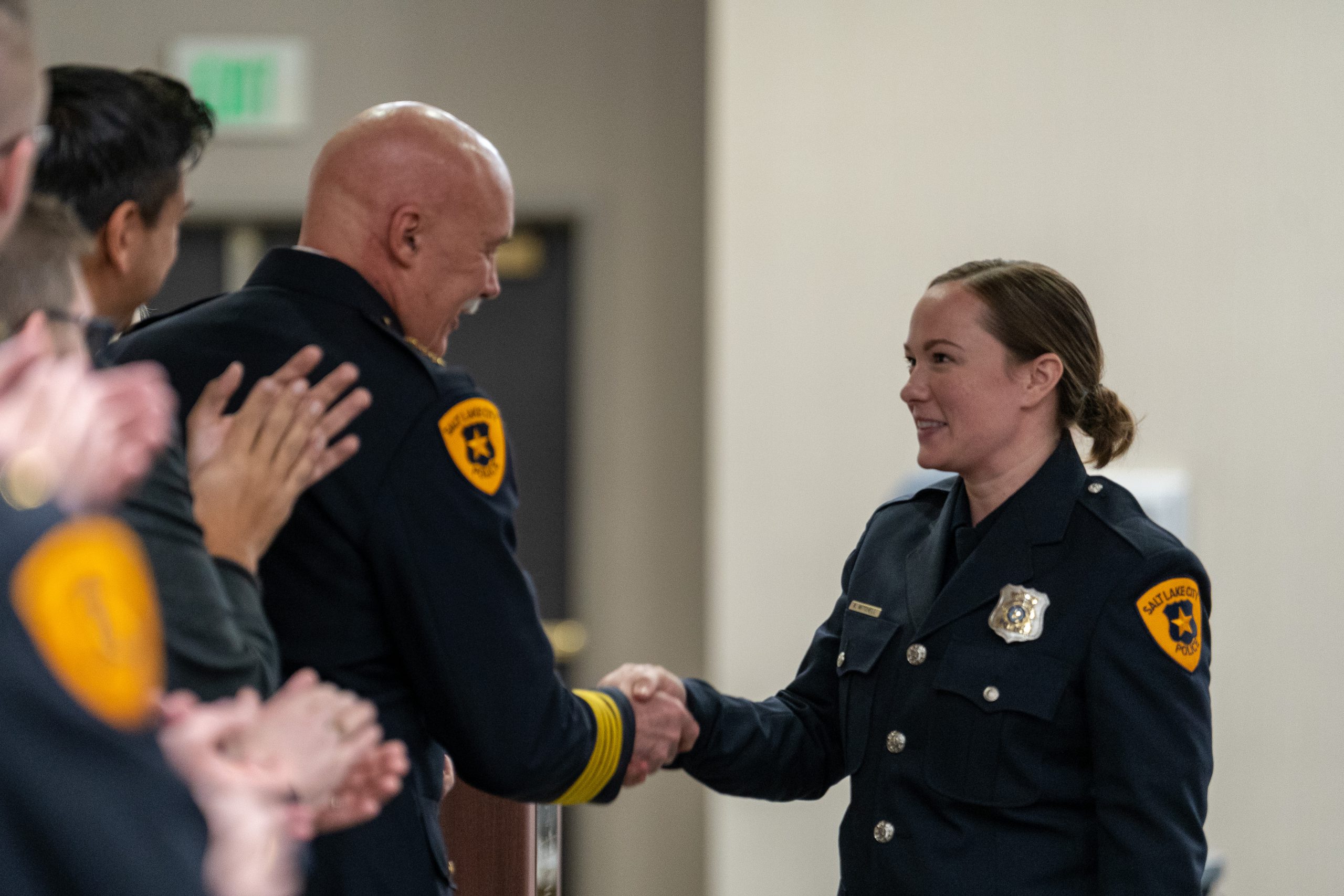 19 Officers Graduate SLCPD Police AcademySALT LAKE CITY — Today, the 19 police recruits of Class 160 took the next step forward in their law enforcement career by graduating from the Salt Lake City Police Academy. “Becoming a Salt Lake City police officer is more than just being a crime fighter,” said SLCPD Chief Mike Brown. “We are problem solvers, effective communicators, and guardians to every person who lives in, works, or visits our community.” “I am so grateful for those who serve our city each day, and I’m thrilled to welcome a new recruit class to our outstanding police department,” said Salt Lake City Mayor Erin Mendenhall. “So much sacrifice, work, and mental fortitude goes into becoming an officer, and I’m forever thankful for those who choose to serve our capital city.” As outlined in the SLCPD 2022 Updated Crime Control Plan, filling all sworn positions is a top priority for the department. For nearly seven months, the SLCPD Training Unit provided the recruit officers with training around legal, reality-based (scenario), defensive tactics, firearms, crisis intervention, and emergency vehicle operations. The officers now enter the next phase of their training process, known as field training. During this time, the officers are partnered with a Field Training Officer (FTO) and are evaluated on how they perform the day-to-day functions of a patrol officer. Chief Mike Brown added, “Our academy is challenging and hard for a reason. The training unit provides these women and men with the tools necessary to do a job that is heavily scrutinized but critically important to our community.” The Salt Lake City Police Academy is a satellite academy that meets the guidelines and criteria set by the Utah Police Officer Standards and Training (POST). As of February 14, 2023, the SLCPD has 34 vacant sworn positions from its authorized staffing level set by city council. On January 23, 2023, the SLCPD welcomed 17 recruits who are a part of Class 162. They are anticipated to graduate in July. Three photos from today’s graduation ceremony are included with this press release. Anyone interested in applying to be a police officer with the SLCPD should visit: https://police.slc.gov/joinourteam/. Applications are being accepted for both new hire and lateral police officers. ### |