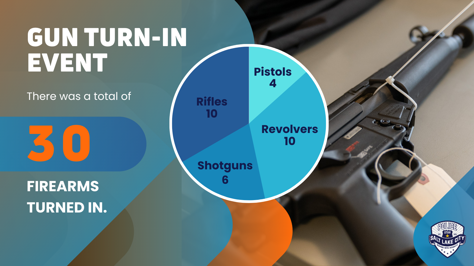 SLCPD Gun Buy-Back Results in 30 Firearms Being Turned InSALT LAKE CITY — Today, the Salt Lake City Police Department announced the results of the department’s gun buy-back program, held on Saturday March 25, 2023, at the Public Safety Building. In total, community members turned in 30 firearms, including four pistols, 10 revolvers, six shotguns, and 10 rifles, three of which were assault-style. This was the second gun buy-back program held in Salt Lake City, by the police department, in more than two decades. The firearms collected will either be donated to the Salt Lake City Police Mutual Aid Association’s Museum or the Salt Lake City Police Department’s Crime Lab, or destroyed. The no questions asked, no-ID required gun buy-back program raised awareness to the number of guns in our community and gave community members the opportunity to relinquish any firearms or ammunition they no longer wanted. Officers also provided gun locks to community members in an effort to promote safe gun handling and storage. Intermountain Health donated the locks to the SLCPD. “Gun violence remains one of the most important issues we need to address in our community,” said Chief Mike Brown. “While violent crime is down in the city right now, we know guns are being sold and traded illegally in our community each week and those guns are being used to cause harm in our community. By reducing the number of firearms – especially guns no longer wanted – we are reducing the chances of those guns being stolen and later used in the commission of a crime.” Chief Brown thanks the Salt Lake City Police Department’s SWAT Team, Investigations Division, Finance Department, Crime Lab, Gang Unit and Public Relations and Community Outreach Unit for their dedicated assistance to making this event possible. Chief Brown also recognizes the Salt Lake City Police Foundation for their continued support. The Salt Lake City Police Foundation made the funding possible for Saturday’s event. Future gun buy-back events will be considered based on resource and funding availability. Community members interested in relinquishing their firearms can do so at any time by calling 801-799-3000. Because the gun buy-back program is over, gift cards cannot be provided and officers will need to complete a police report documenting the relinquishment. Photos taken during the event are being released. Media may use these photos with proper credit to the Salt Lake City Police Department.