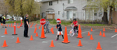 The focus of the Bike Safety Rodeo program is to increase rider safety and awareness for bicyclists in the city. As such children must already have basic bicycle riding skills. As an essential requirement to participate we ask that children be old enough to ride a bicycle without training wheels. Please understand, safety is our number one concern. If children aren’t able to ride unassisted they may be asked to not participate.